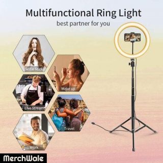 Add to cartMaterial : Metal Product Breadth : 2.5 cm Product Height : 100 cm Product Length : 45 cm Multipack : 110″ inch LED Ring Light with 5 Ft Tripod Stand Combo and Phone Holder for YouTube Reels Photo-shoot Video Live Stream Makeup Videos vlogging Vigo Video Shooting | 3 color modes Dimmable Lighting | Recording …