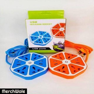 Hexagon Electrical Extension Cord 4 Surge Power Socket with 4 USB Port (Multicolour)Read More