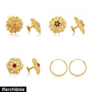 Add to cartBase Metal : Alloy Plating : Gold Plated Sizing : Non-Adjustable Stone Type : Cubic Zirconia/American Diamond Type : Studs Multipack : 4 earring,earrings,stud earring,earring for girl and women,gold plated earring,1 gram gold earring,traditional earring,combo earring,combo earring set,flower earring,round earring,stylish earring,bali,chandbali earring. Sales package- 4 pair earring set Country of Origin : India
