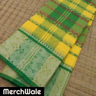 Add to cartSaree Fabric : Cotton Blouse : Without Blouse Blouse Fabric : No Blouse Pattern : Woven Design Multipack : SingleThis is pure handwoven Tant Tangail quality Jacquard work Saree by the weavers of Bengal. Material is pure cotton with Jacquard border gives you a rich traditional and exotic look . This is a 5.5 mtr …