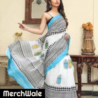 Women’s Ikat Hand Block Print Jaipuri Cotton Mulmul Saree with Blouse PieceRead More