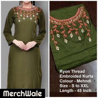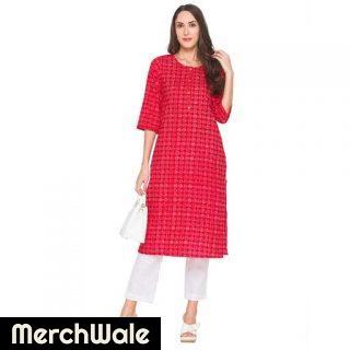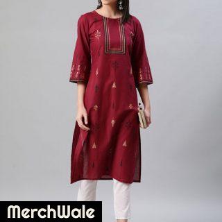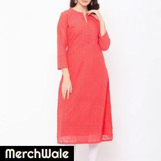 ZOLA Cotton Round Neck Embroidered Red Casual Wear Kurti for WomenRead More