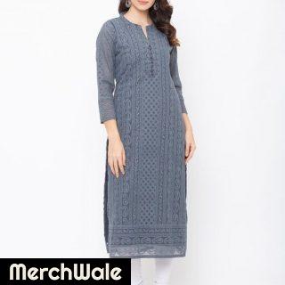 ZOLA Grey Exclusive Georgette Lucknowi Chikankari Kurti For Women(220732Grey)Read More