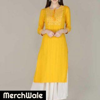 ZOLA Yellow Fabulous Georgette Lucknowi Chikankari Kurti For Women(220754Yellow)Read More