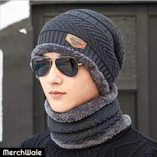 ARNAH TREASURE Best Design Men & Women warm Combo Cap, Neck Warmer Scarf and Woolen Gloves Set color Assorted