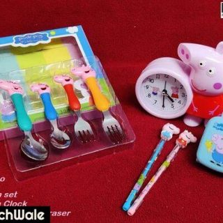 Peppa Pig spoon set of 4pcs (2 Spoons and 2 Forks), Unique kids favorite cartoon character Peppa Pig. Non toxic and high quality