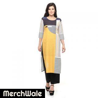 Stylish Women’s American Crepe Multicolor Digital printed Straight Kurti.