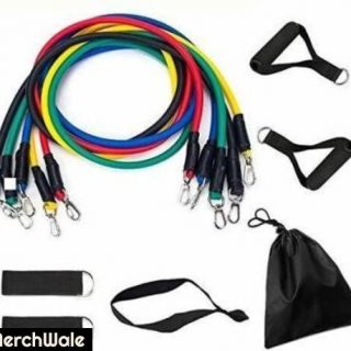 Shopeleven 11 Pack Yoga Resistance Bands Set,Including 5 Stackable Exercise Bands with Door Anchor,2 Foam Handle,2 Metal Foot Ring Carrying Case Home Workouts,Physical Therapy,Gym Training